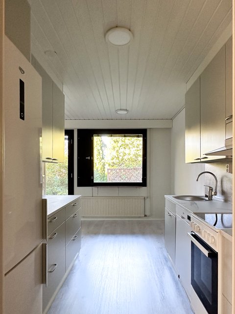 - Jääkaappipakastin (vuodelta 2020), liesi (vuodelta 2023), liesituuletin (vuodelta 2023), ja astianpesukone (vuodelta 2023)