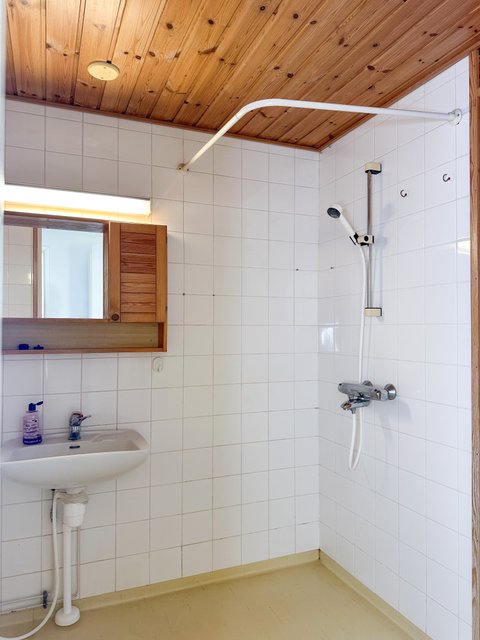 - WC-istuin, suihku, pesukoneliitäntä, peili, ja pesuallas