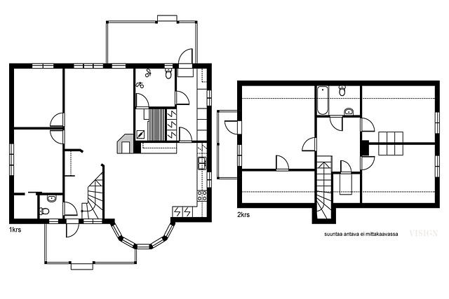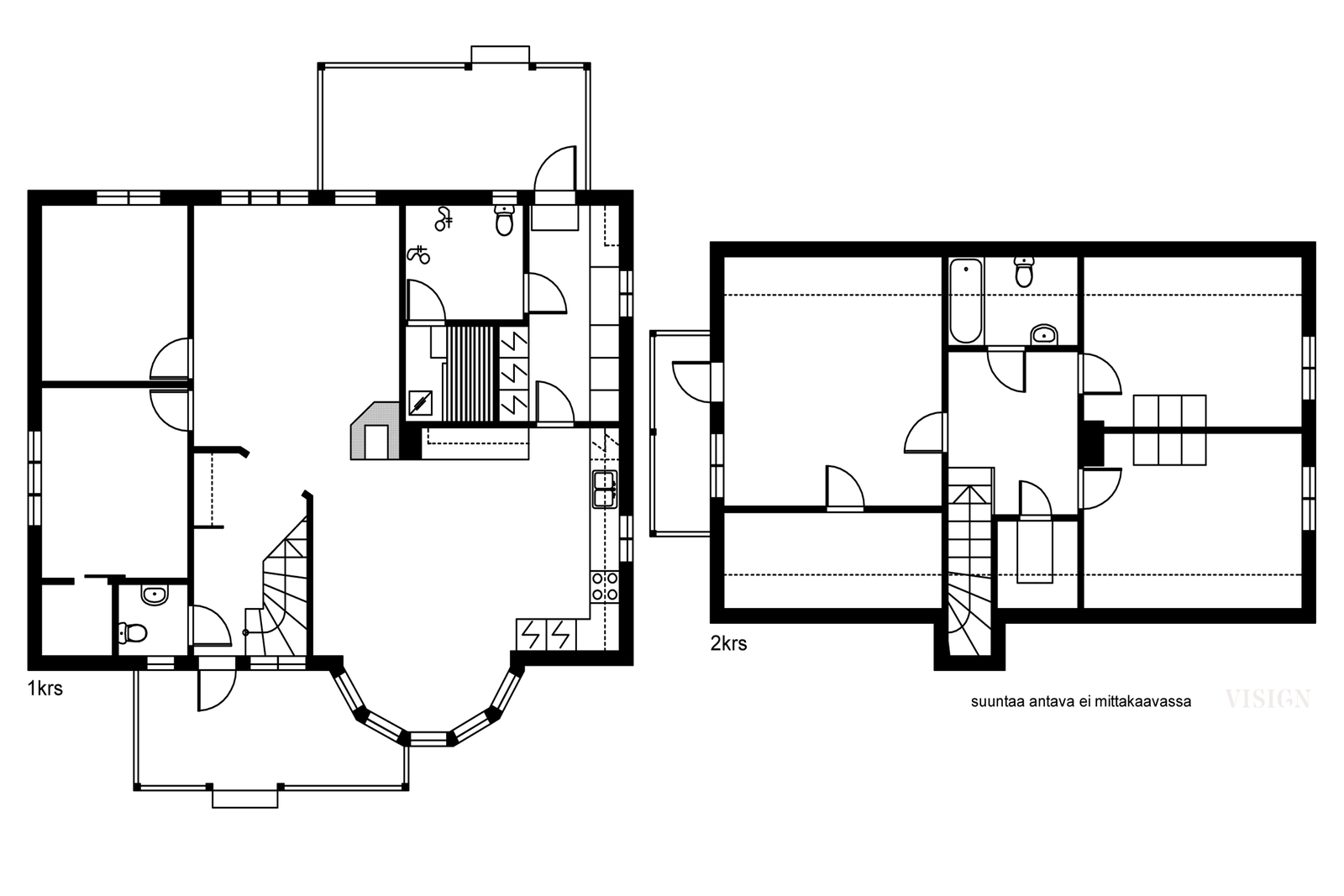 - Kaksi erillistä vessaa; toinen ylä ja toinen alakerrassa. Yläkerran vessassa kylpytamme ja suihku. Lisäksi wc alakerran pesutiloissa.