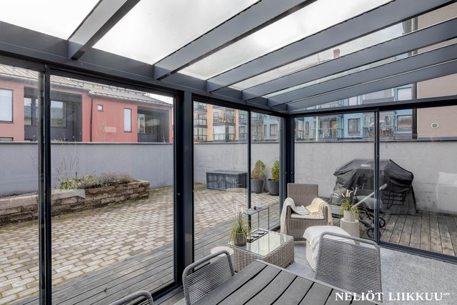 - Lasitettu terassi takapihan puolella.