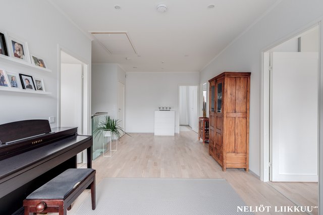 - Yläkerran avarasta aulasta on käynti neljään tilavaan makuuhuoneeseen, käytännöllinen ja viihtyisä ratkaisu koko perheen tarpeisiin.