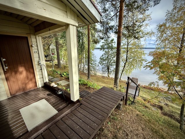 Talossa on avara olohuone, jonka takka tuo lämpöä ja viihtyisyyttä syksyn ja talven iltoihin. Keittiö kutsuu kokkaamaan leivinuunin lämmössä, ja sauna tarjoaa pehmeät löylyt kiireisen päivän jälkeen. Parvekkeelta ja kuistilta avautuvat upeat Pielisen näkymät, joihin ei kyllästy.