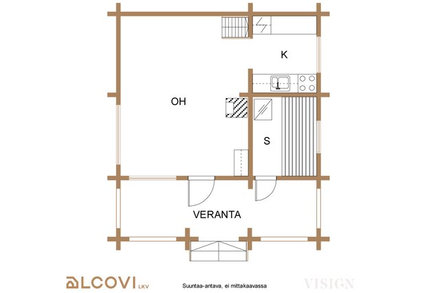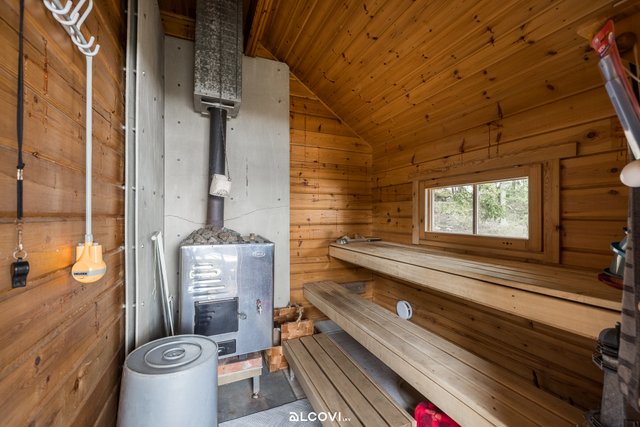 - Puukiuas. Sauna sijoittuu mökin yhteyteen.