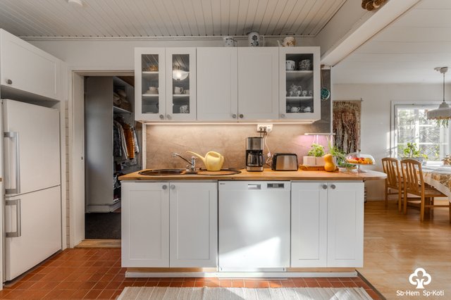- Jääkaappipakastin, uuni, liesi, liesituuletin, ja astianpesukone