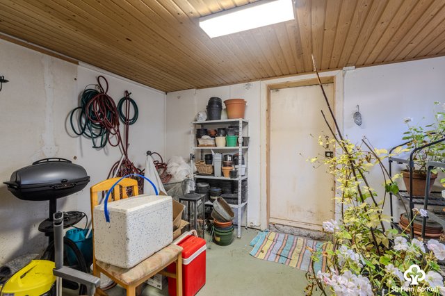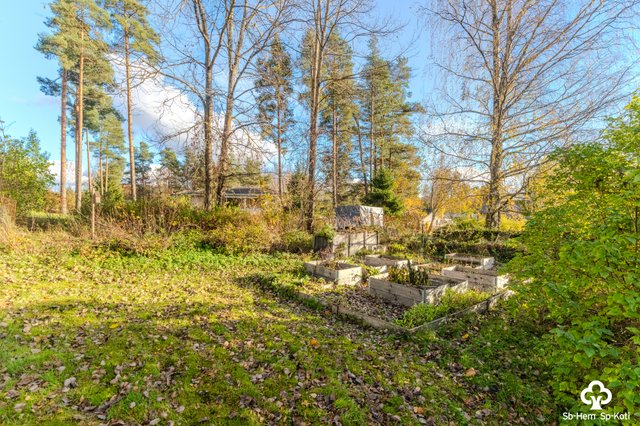 - På tomten finns ett växthus och en grönskande odlingsyta – dessutom finns byggnadsrätt kvar. / Tontilla on kasvihuone ja vehreä kasvimaa – lisäksi rakennusoikeutta on vielä jäljellä.