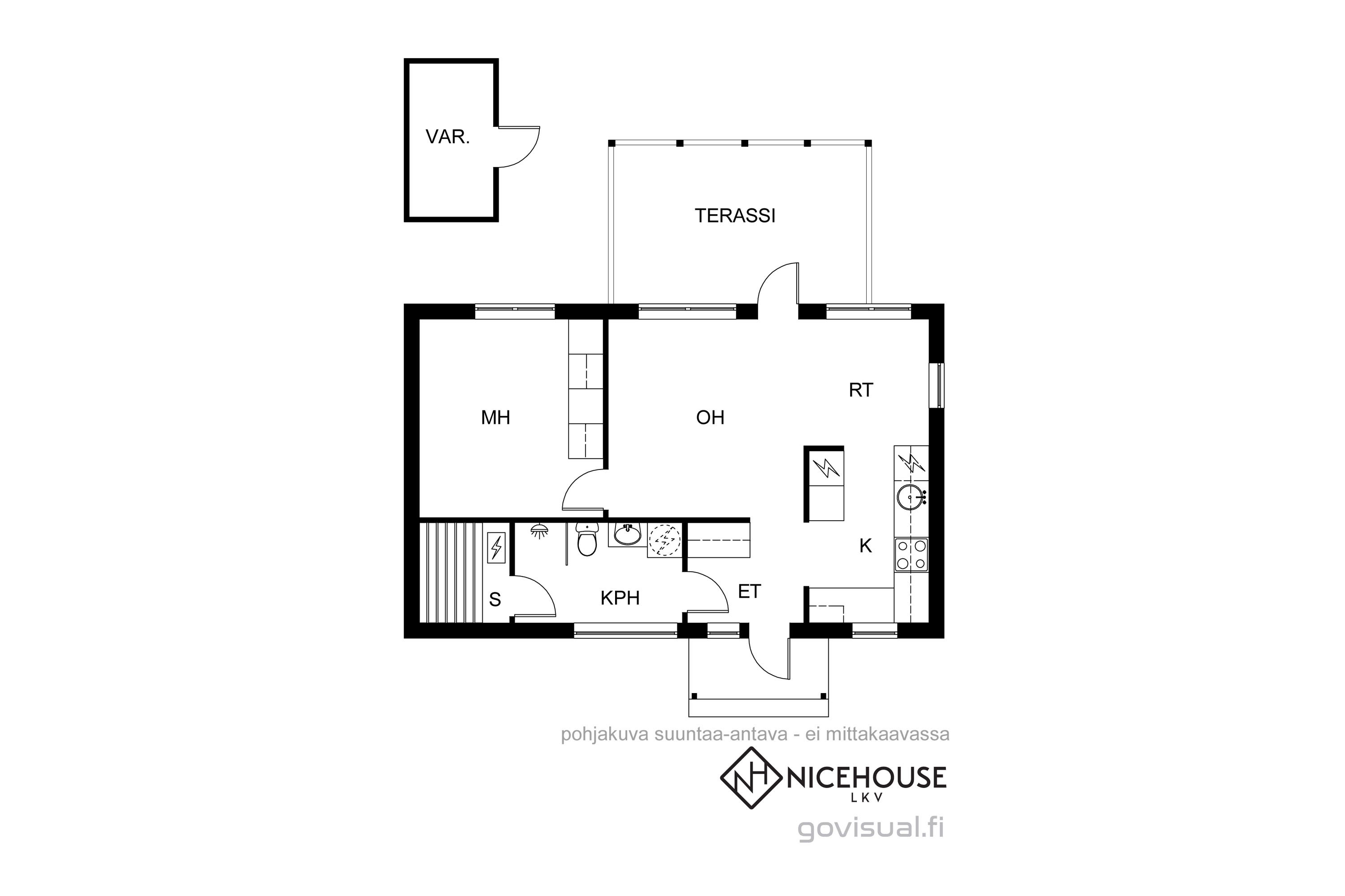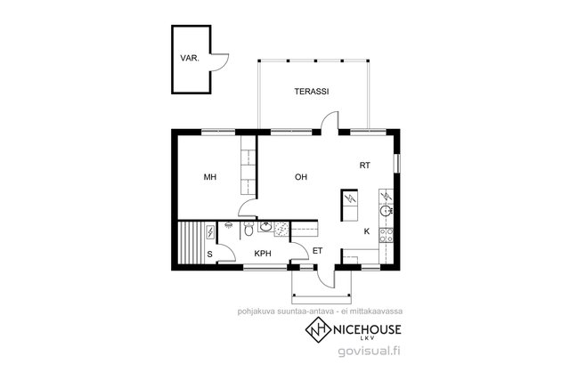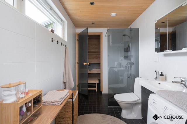 - Tilava kylpyhuone, johon mahtuu mm. pesutorni