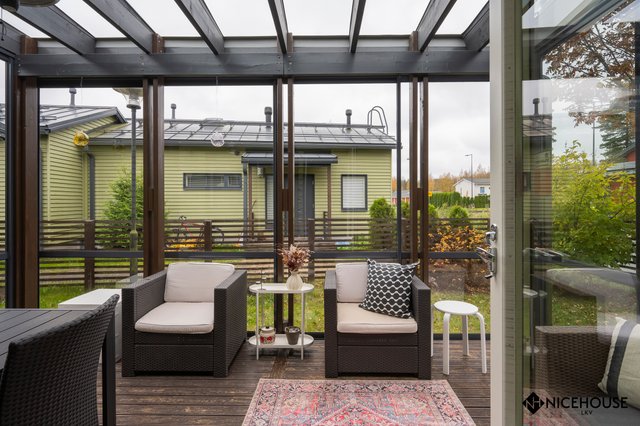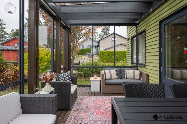Asunnossa on oma sauna, jossa rentoutuminen on taattua, sekä lasitettu eteläterassi, joka toimii mukavana lisätilana ympäri vuoden. Makuuhuoneessa on tilaa myös työpisteelle ja kiinteissä kaapistoissa on runsaasti säilytystilaa.