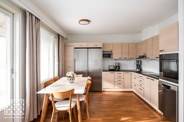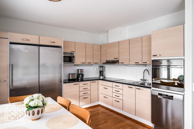 - Jääkaappi, erillinen pakastin, uuni, liesi, liesituuletin, ja astianpesukone