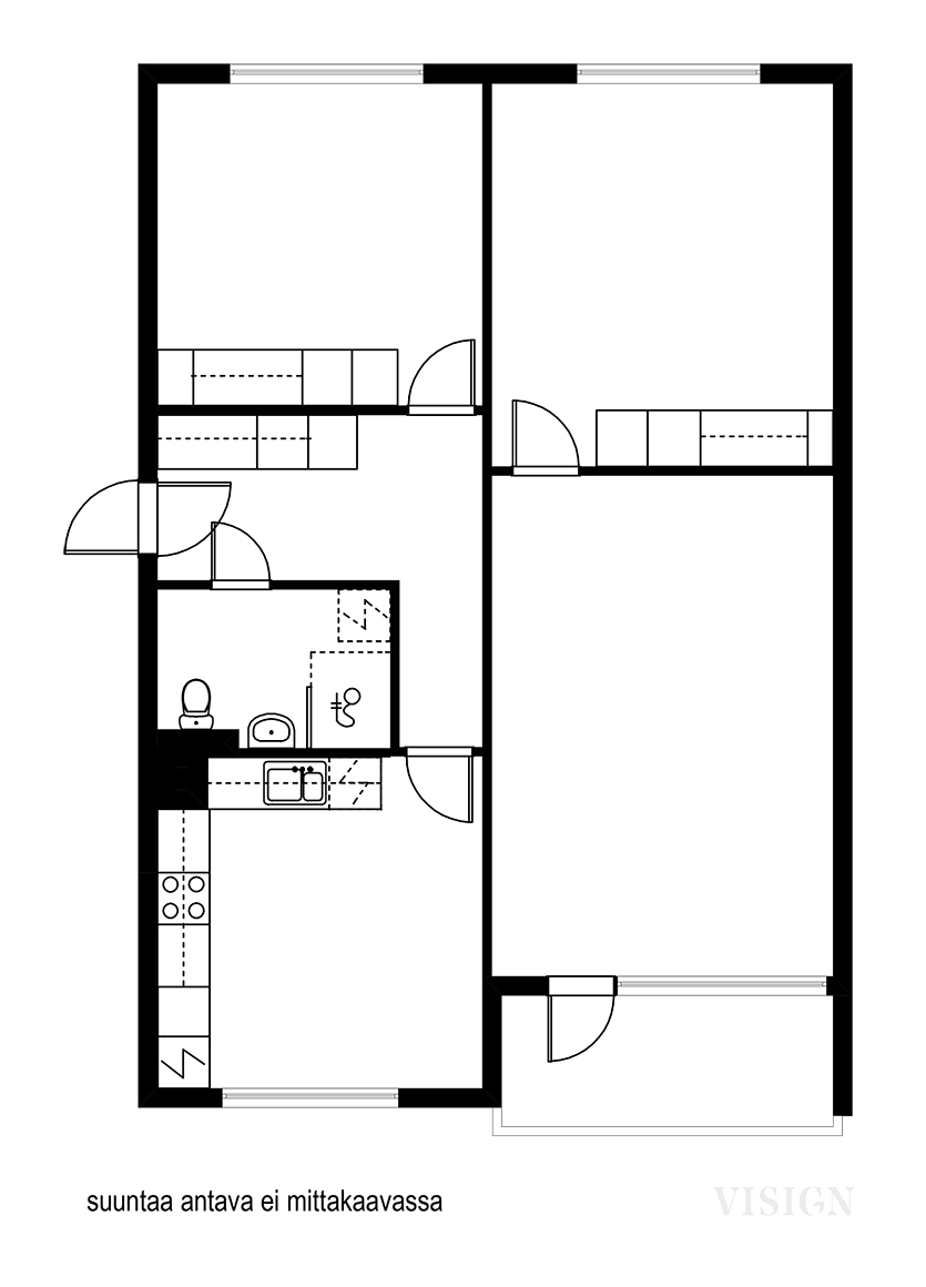 3h, k, kph, lasitettu parveke (Yj. 3h+k)