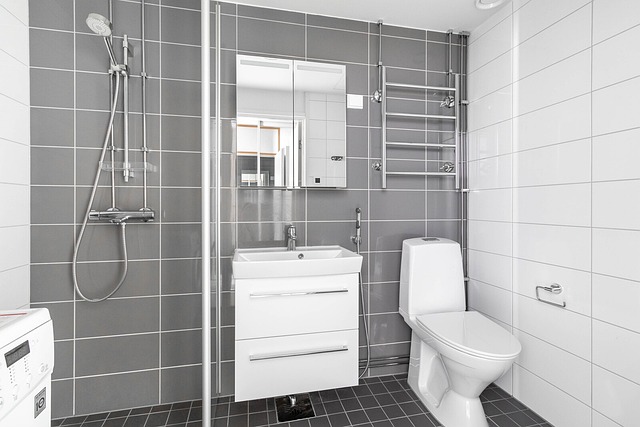 - seinäpatteri (lämpiää keskuslämmitysvedellä), bidee seinät: valkoinen ja harmaa laatta, lattia: harmaa laatta