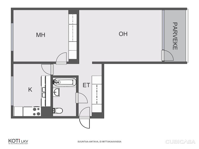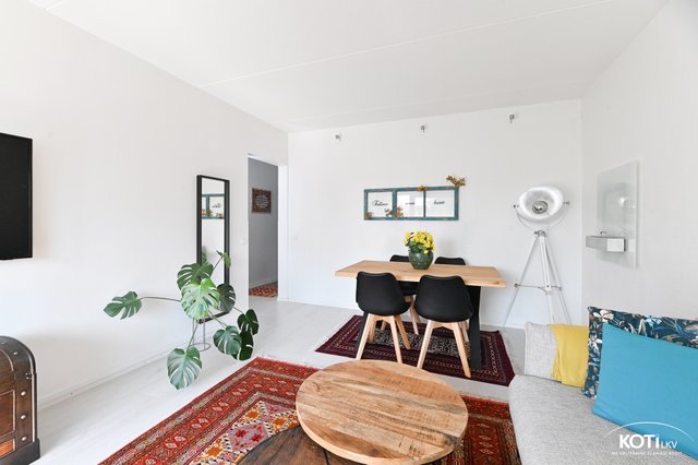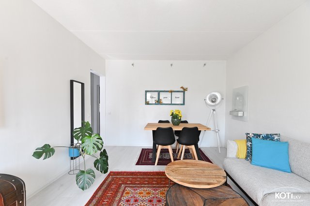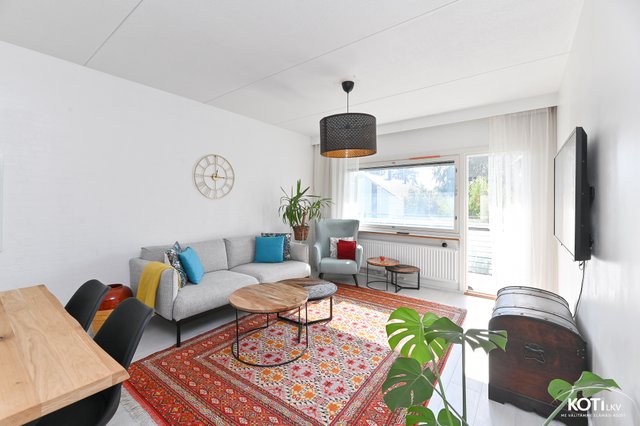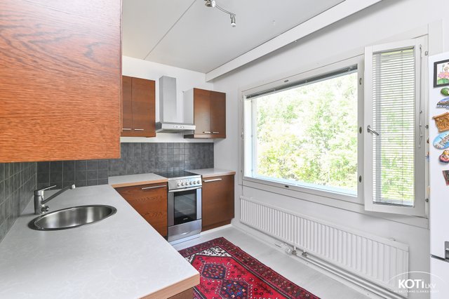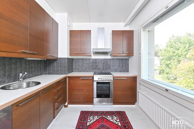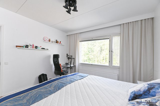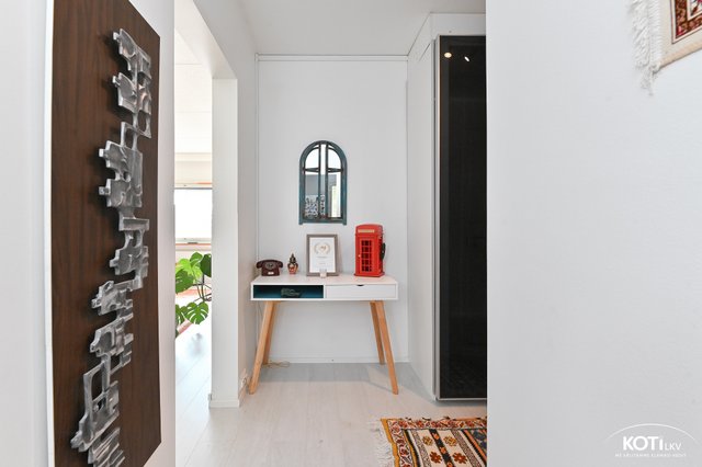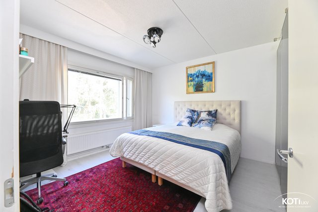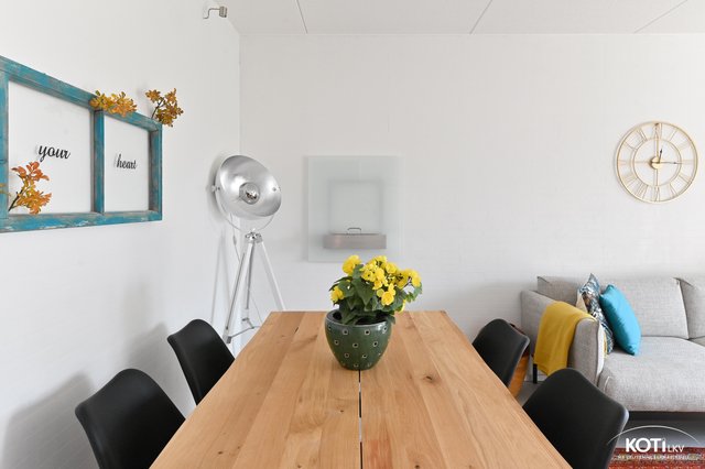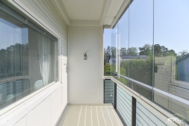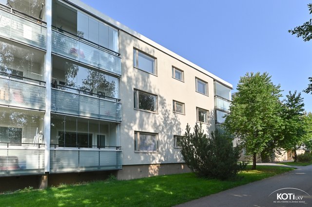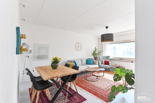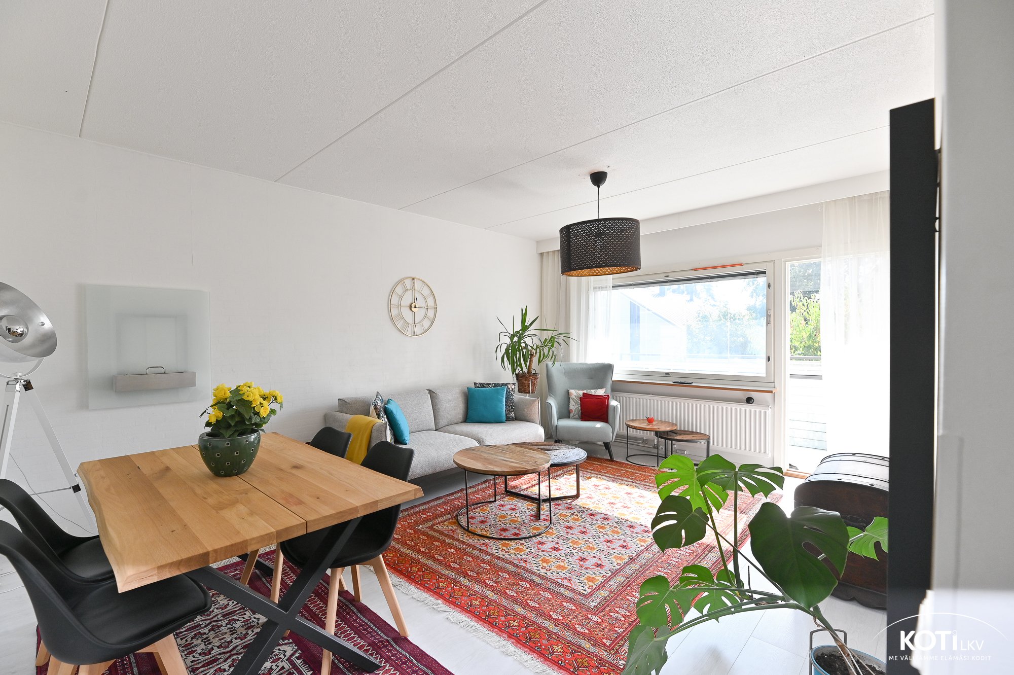 Tämä neliöitään isomman oloinen koti on valoisa ja muuttovalmis. Olohuoneesta käynti remontoidulle ja lasitetulle eteläparvekkeelle. Tilavaan olohuoneeseen mahtuu sohvaryhmän lisäksi ruokailuryhmä. Makuuhuoneessa ja eteisessä on runsaasti kaappitilaa. Asunnosta on mukavat, läpitalon esteettömät näkymät. Kummallakaan puolella ei ole muita taloja tai naapureita edessä.