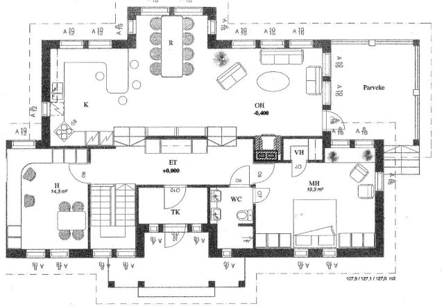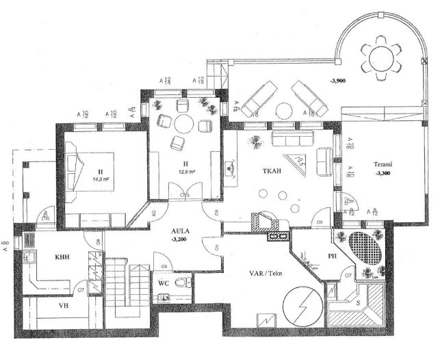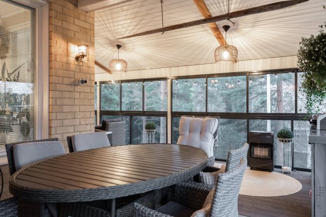 Oh + k + 4mh + th + s + 2kph + 2vh + khh + lasitettu terassi + at