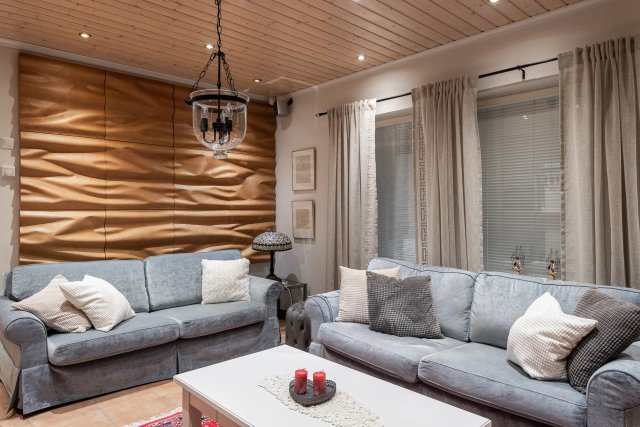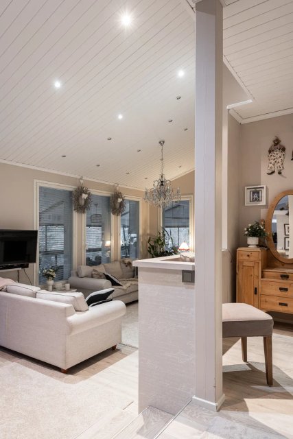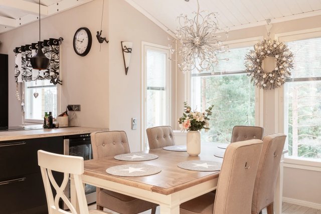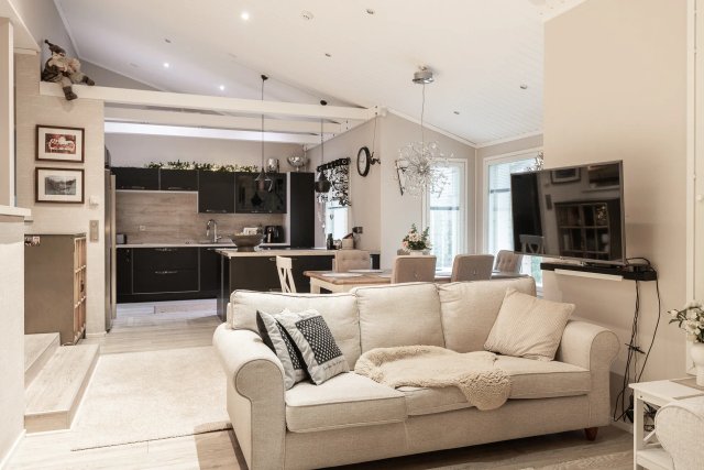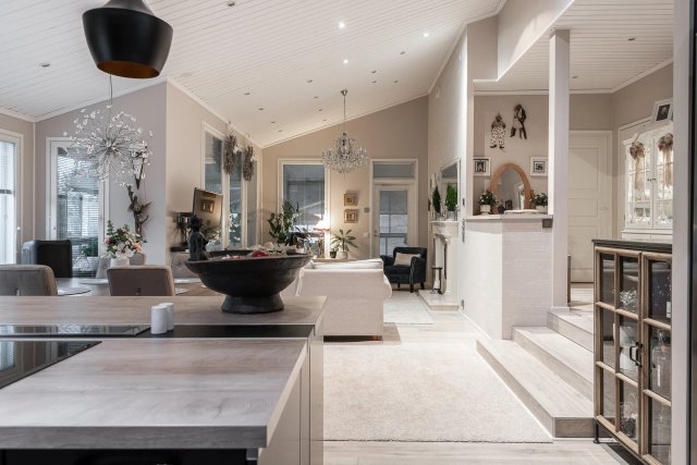 Iso avoin olohuone ja ruokailutila on yksi tämän hienon talon viihtyisimmistä paikoista.