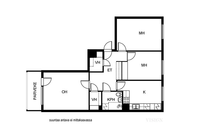 - Mainittu pinta-ala saattaa tämän ikäisessä kohteessa poiketa olennaisesti nykyisten standardien mukaan laskettavasta asuinpinta-alasta. Todellinen asuinpinta-ala voi olla yhtiöjärjestyksessä, isännöitsijäntodistuksessa ja esitteessä mainittua pienempi tai suurempi.