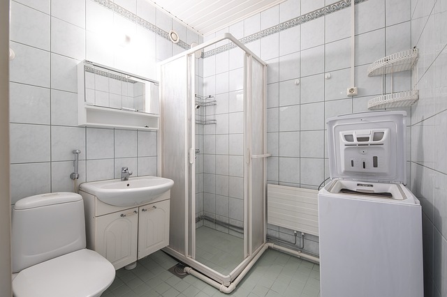 - Suihkuseinä, pesukoneliitäntä, wc-istuin, peilikaappi, ja suihku
