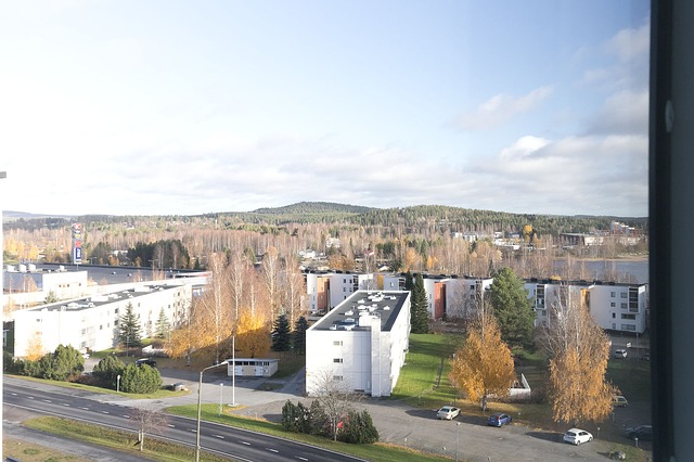 - Näkymät olohuoneesta, makuuhuoneesta ja parvekkeelta pohjoisen suuntaan sisäpihalle päin.