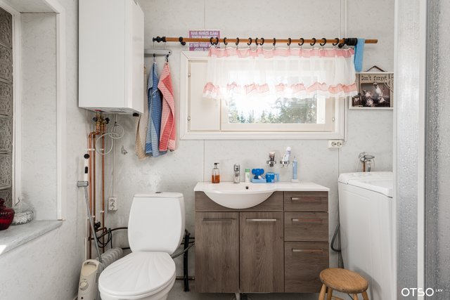 - WC-istuin (2004), suihkukaappi (2004), pesukoneliitäntä, allaskaappi (2004), bidee-suihku, ja peili