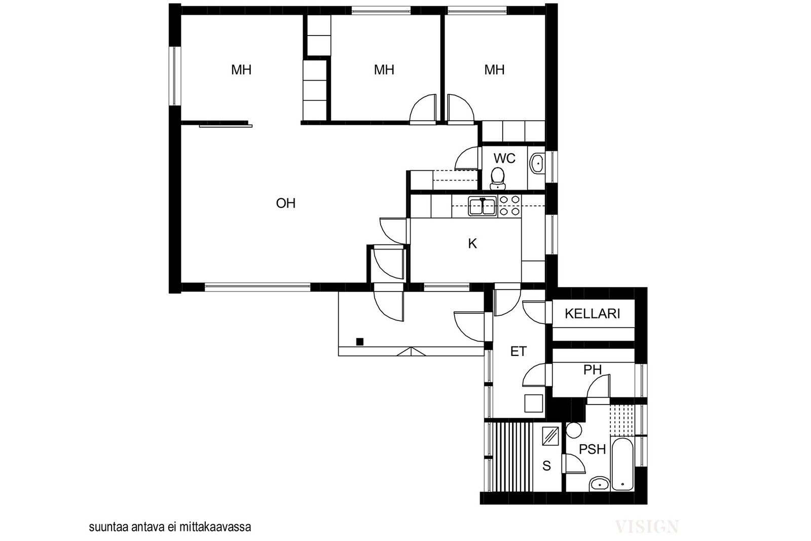 4h+k+taloussiipi, jossa pannuhuone, sauna, pukuhuone ja pesuhuone
