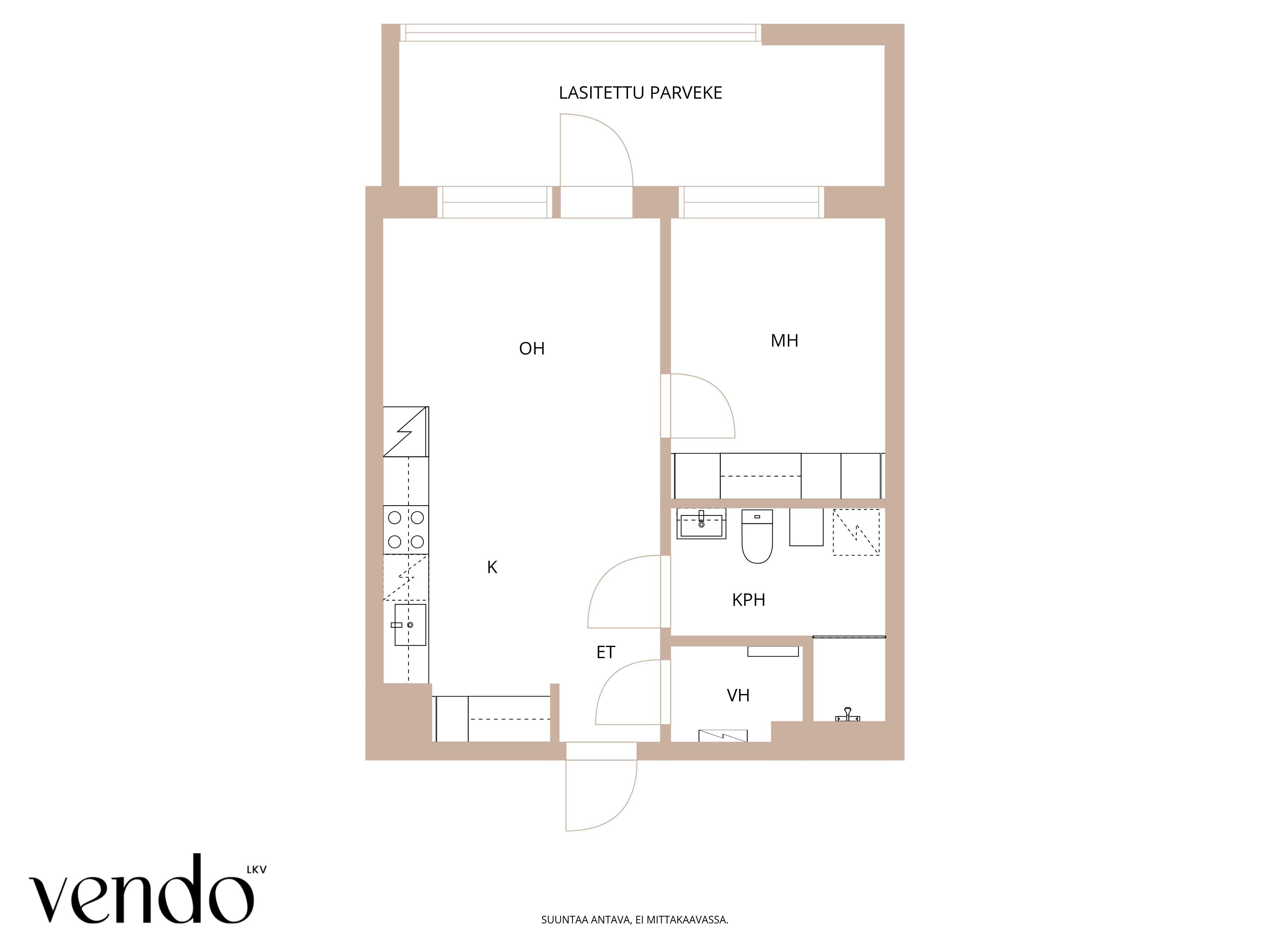 - Jääkaappipakastin, erillisuuni, liesituuletin, astianpesukone, ja mikroaaltouuni