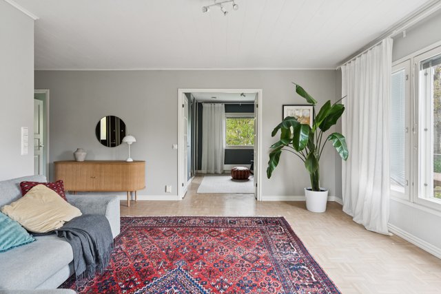Kolme makuuhuonetta tarjoavat omaa tilaa perheen jokaiselle jäsenelle. Avara ja valoisa olohuone avautuu puutarhapihalle. Lämmin varastotila omalla sisäänkäynnillä ja ikkunalla käy vaikka kotitoimistoksi ja tilavaan autotalliin mahtuu auto sekä ulkoiluvälineet. Hulppeasti lisää varastotilaa löydät koko talon mittaiselta käyttöullakolta.