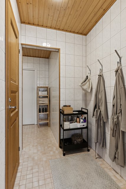 - Ullakko, lämmin ulkovarasto ja seinäkaapit