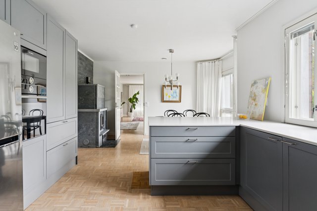 Tämä valoisa ja hiljattain remontoitu omakotitalo tarjoaa täydelliset puitteet upealle ja hyvälle perhe-elämälle. Vuonna 1994 valmistunut muuttokuntoinen tiiliverhoiltu talo on juuri kuntotarkastettu ja raportin saat välittäjältä. Kodin sydän on moderni HTH-keittiö, varustettuna laadukkailla Boschin kodinkoneilla ja kvartsitasoilla. Keittiöstä löytyy myös miellyttävän pehmeää lämpöä antava vuolukivitakkauuni, jolla pyöräytät vaikka kalakukon tai karjalanpiirakat.