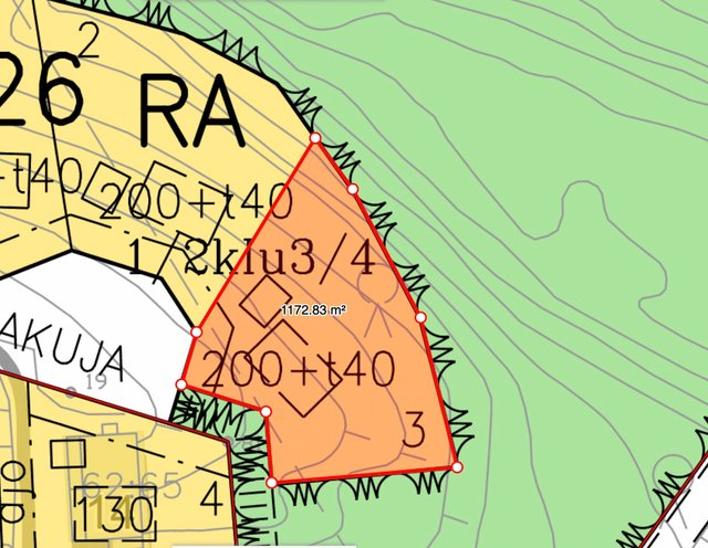 - Rakennusoikeus 200 + t40, eli loma-asunnolle 200 kem2 ja talousrakennukselle 40 kem2.