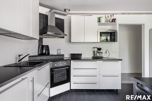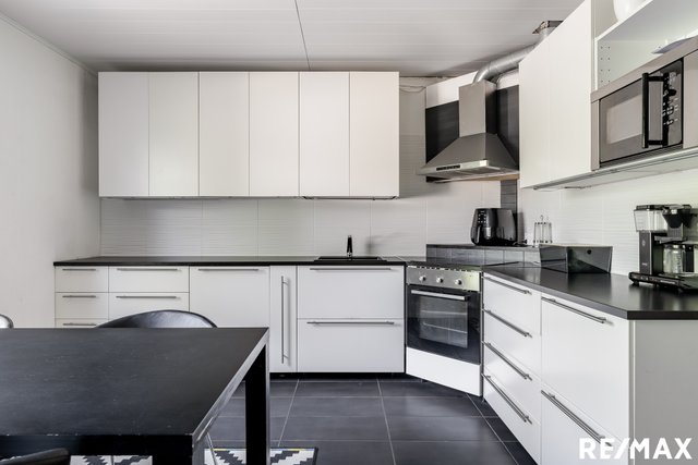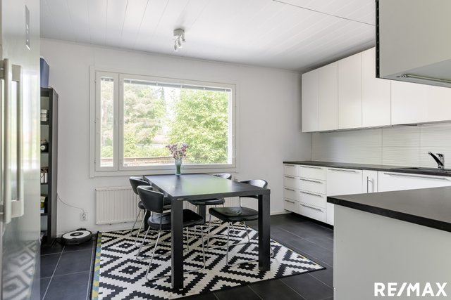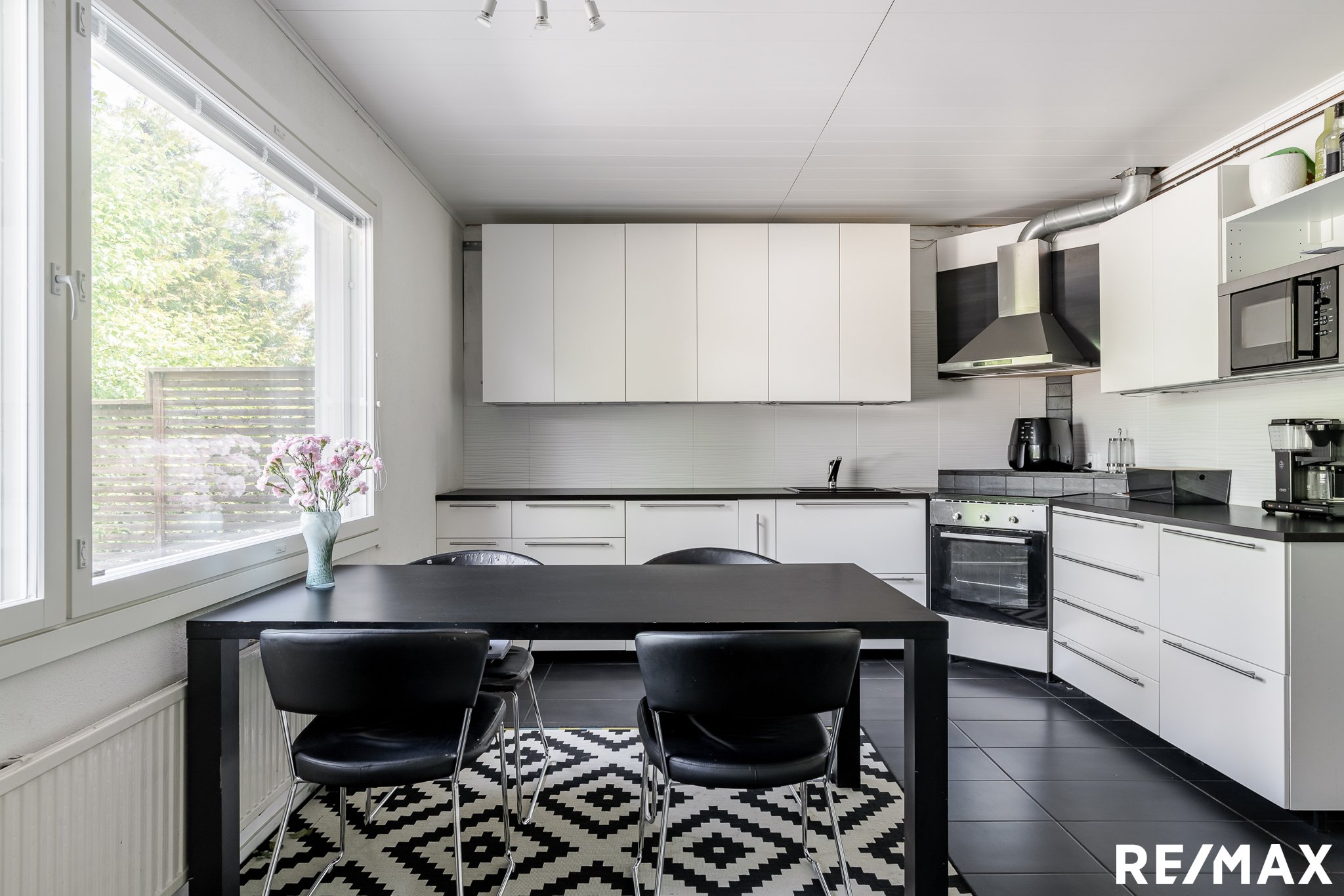 Vuonna 2018 uusittu keittiö on varustettu nykyaikaisilla kodinkoneilla, kuten induktioliedellä ja erillisellä pakastimella. Tilat on suunniteltu arjen sujuvuutta silmällä pitäen, ja asumismukavuus on huomioitu kautta linjan.