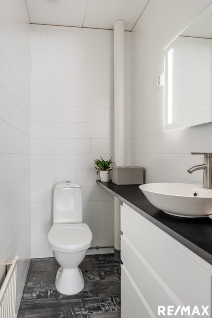 - Suihku, lattialämmitys, peili, ja pesuallas