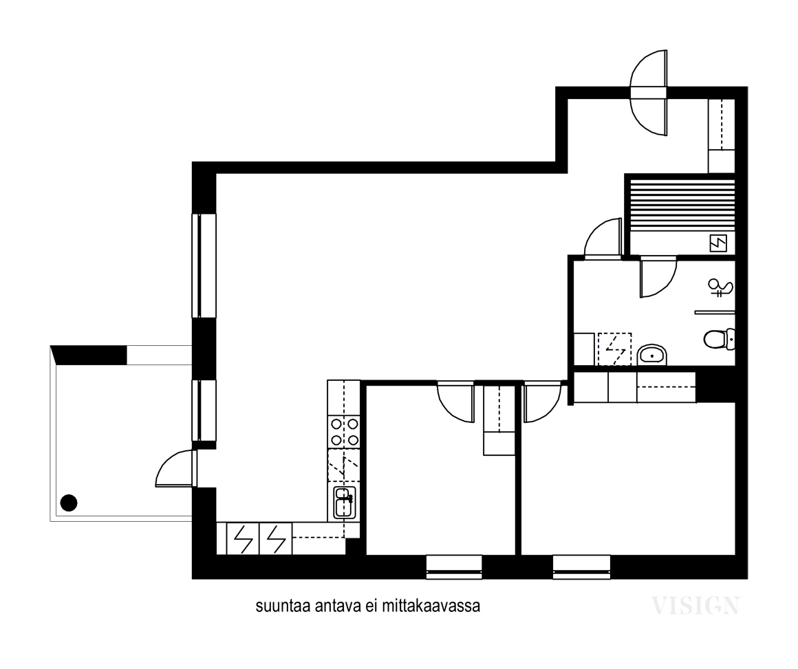 - Erillisuuni, jääkaappipakastin, liesituuletin, astianpesukone, ja kiinteät valaisimet