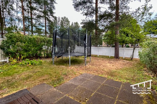 Lapsiperheen palvelujen keskellä tilava 1-tasoinen kolmio. Erillisessä keittiössä on kivasti tilaa kokkailuun ja yhteisiin ruokailuhetkiin. Olohuoneen suuri koko mahdollistaa sen jakamisen tarvittaessa oleskelutilaan ja työskentelynurkkaukseen, jos makuuhuoneet rauhoitetaan levolle ja hiljentymiselle. Isompaa makuuhuonetta ei 180-senttinen sänkykään tee ahtaaksi ja pienemmässäkin on väljyyttä sekä sängylle että työpöydälle. Säilytystiloja on vaatehuoneessa ja kaapistoissa, joita on isossa makuuhuoneessa sekä keittiön ja saunatilojen väliin jäävässä aulassa. Vuonna 2016 remontoitu kylpyhuone on saanut juuri uudet silikonisaumat , wc on remontoitu 2017 ja seinäpinnat on maalattu 2018, joten tähän kotiin voi muuttaa ilman remonttihuolia. Tilavan kodin takaovi avartaa kesän tullen oleskelutilat valokatetulle terassille ja omalle takapihalle, jossa viihtyy koko perhe.