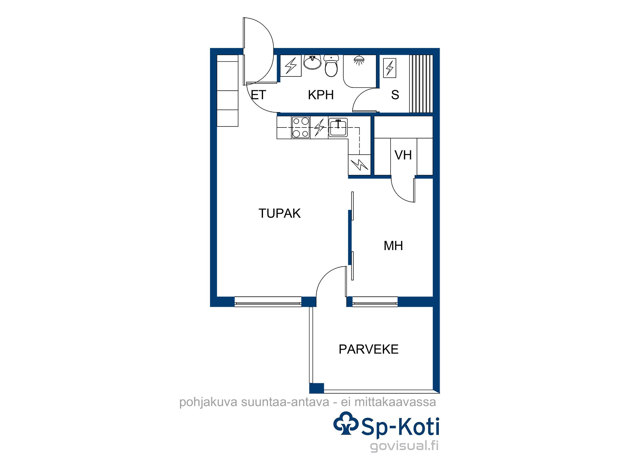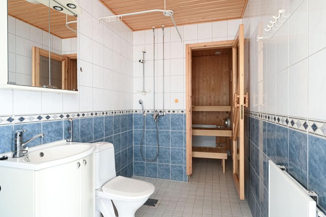 - WC-istuin, suihku, lattialämmitys, pesukoneliitäntä, peilikaappi, pesuallas, ja bidee-suihku