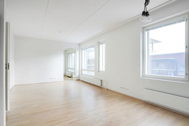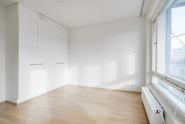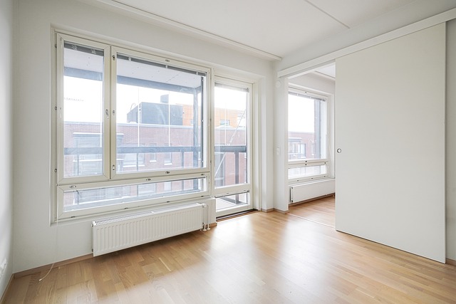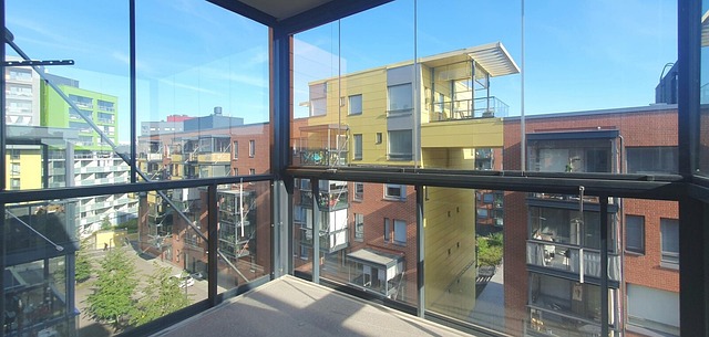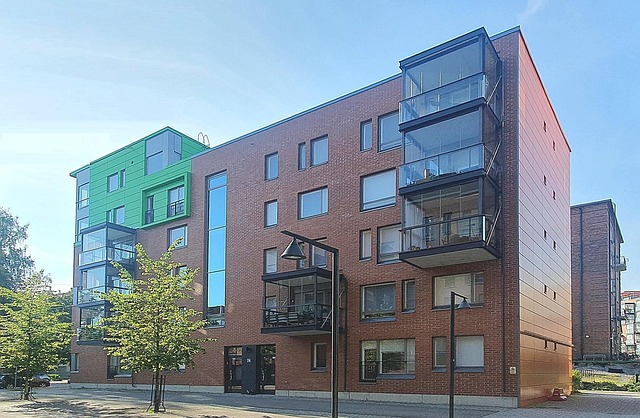 Tehoneliöinen ja valoisa kolmio hissillisen talon viidennessä kerroksessa.