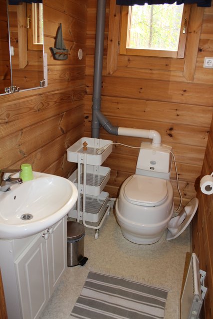 - Erillinen WC mökissä, missä kompostoiva wc.