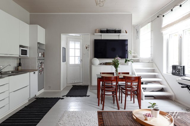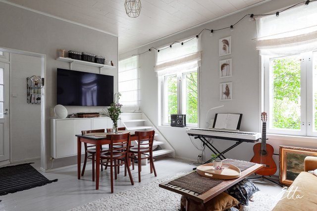 Tunnelmallinen puutalokoti Portsassa – kauniisti remontoitu kaksikerroksinen asunto
