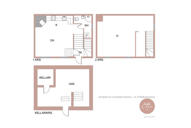 - Asuinkerros 30,5 m2 ja ullakkokerros 19,5 m2 + rakentamaton kellari.