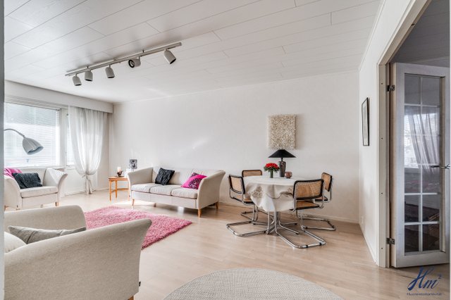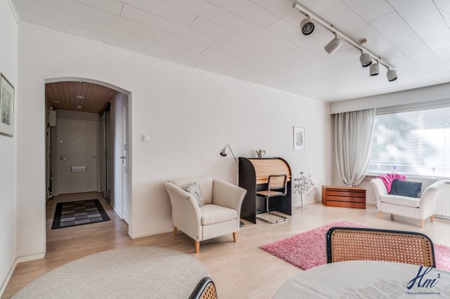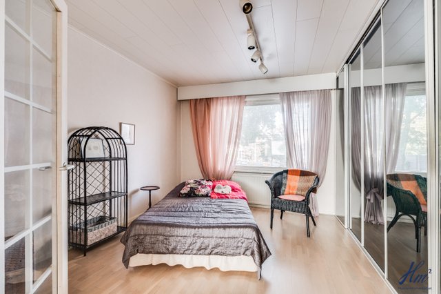 Asunnossa on tilavat huoneet, erillinen vaatehuone / kodinhoitotila pesukoneliitännällä sekä lasitettu parveke, jolta avautuvat näkymät vehreälle sisäpihalle. Kotoisa asunto on muuttovalmis ja heti vapaa uusille asukkaille.