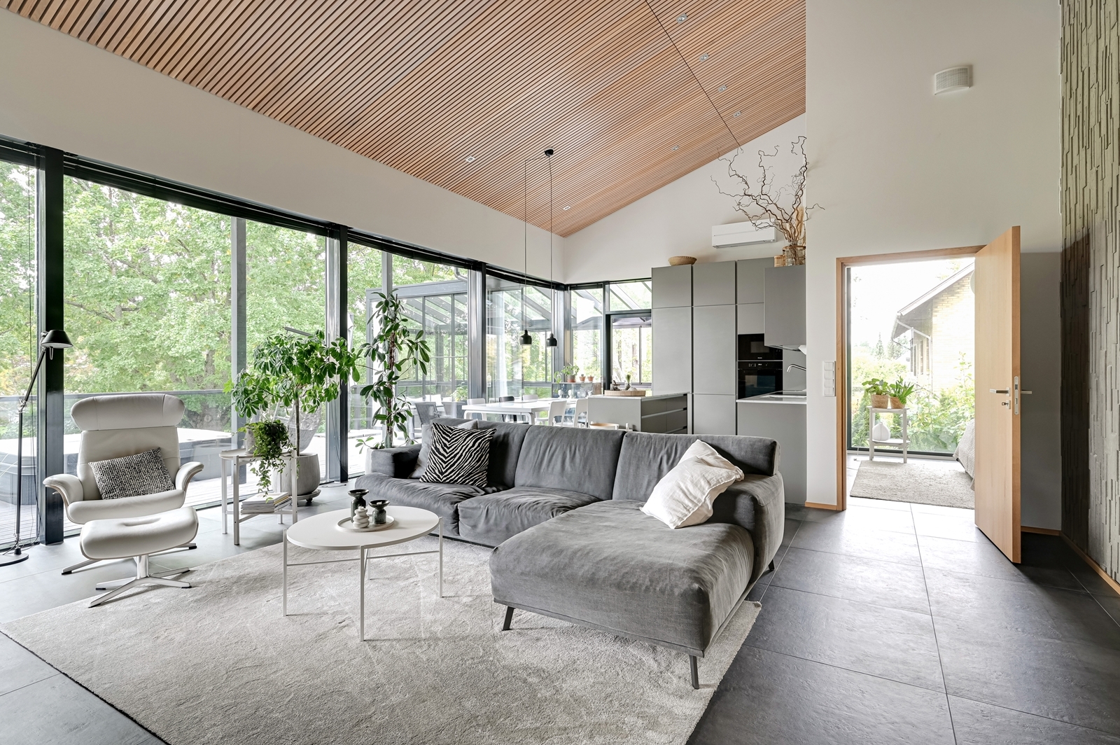 Tämän kodin ajattoman tyylikkäät ja laadukkaat materiaalit on valittu huolella ja hyvällä maulla. Täällä laadukas rakentaminen näkyy jokaisessa pienimmässäkin yksityiskohdassa.