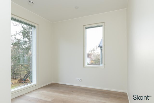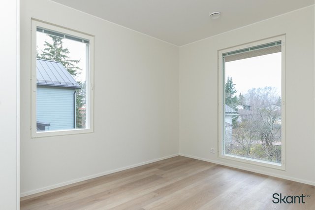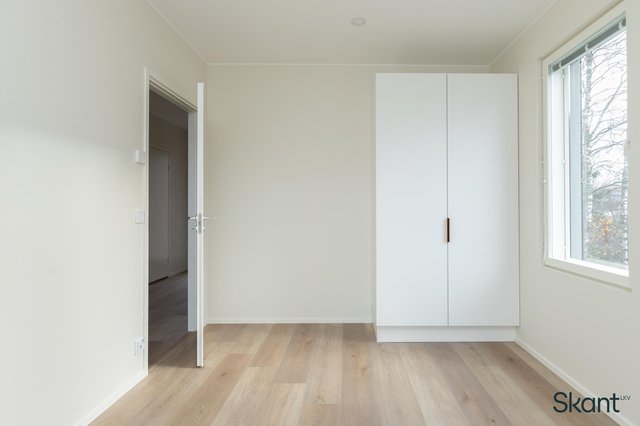 - Yksi makuuhuoneista sijaitsee alakerrassa ja kolme yläkerrassa. Päämakuuhuoneessa vaatehuone, muissa kaapistot.