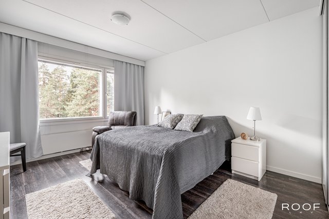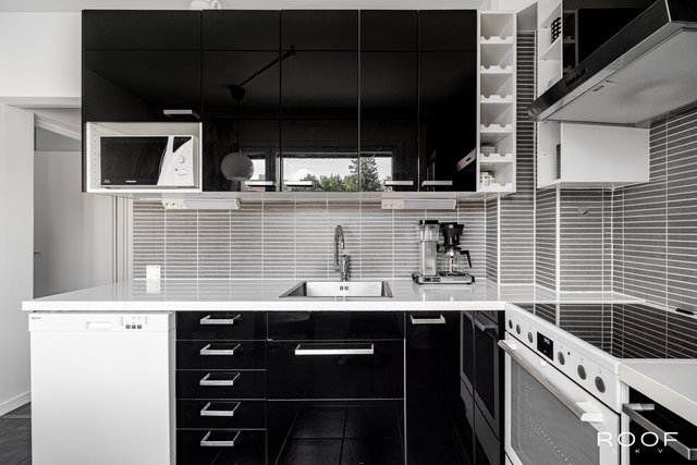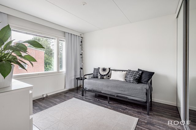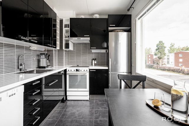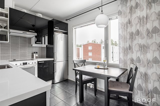 Asunto on hyväaaä kunnossa. Tyylikäs musta keittiö tarjoaa runsaasti säilytys- ja työtilaa. Kylpyhuone on uusittu linjasaneerauksen yhteydessä ja varustettu lattialämmityksellä. Huoneiston päivitetyt pinnat tuovat kokonaisuuteen raikkaan ja ajattoman ilmeen. Olohuoneesta on käynti asunnon parvekkeelle, josta avautuu näkymä rauhalliselle sisäpihalle.