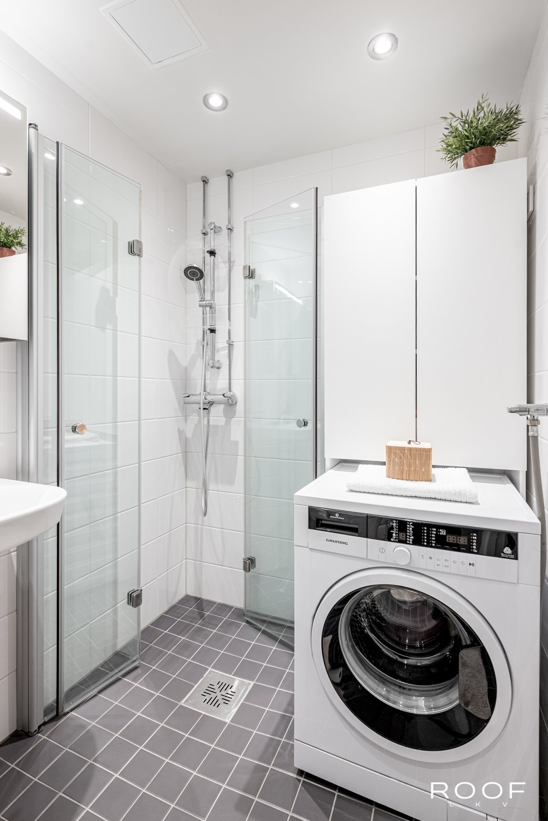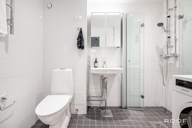- WC-istuin, suihku, pesukoneliitäntä, ja suihkuseinä