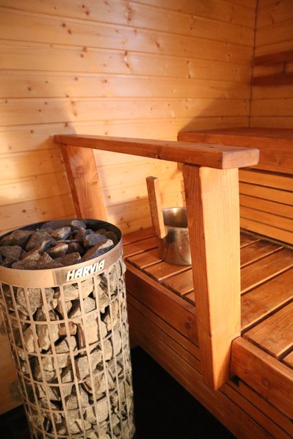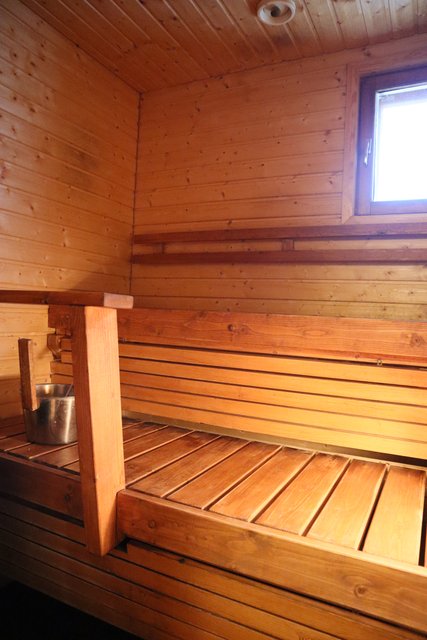 - Tyylikäs sauna, jossa Harvian tornikiuas.