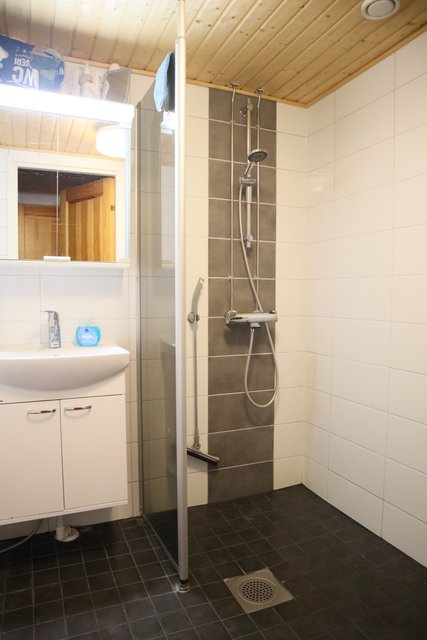 - 2017 remontoitu laatoitettu kylpyhuone, jossa suihku, wc ja pesukonelittäntä. Lattialämmitys.
