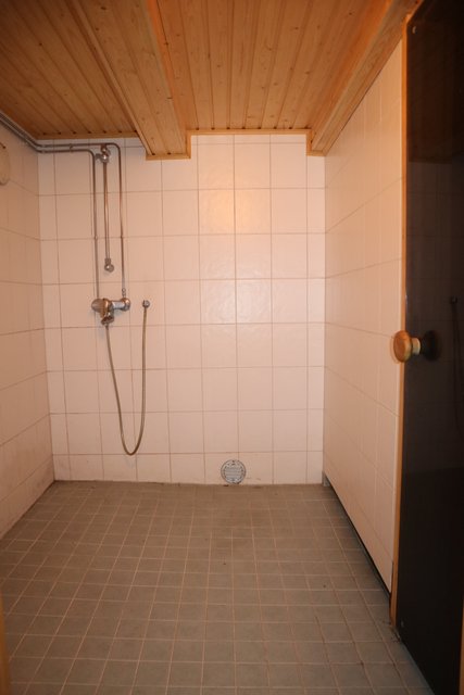 - Kellarikerroksessa laatoitettu pesuhuone ja sauna. Kellarissa myös erillinen wc. Asuinkerroksessa kaksi kylpyhuonetta muuovipinnoin, joissa myös wc:t.