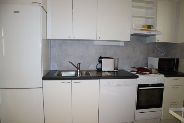 - Jääkaappipakastin, liesi, astianpesukone, ja liesituuletin