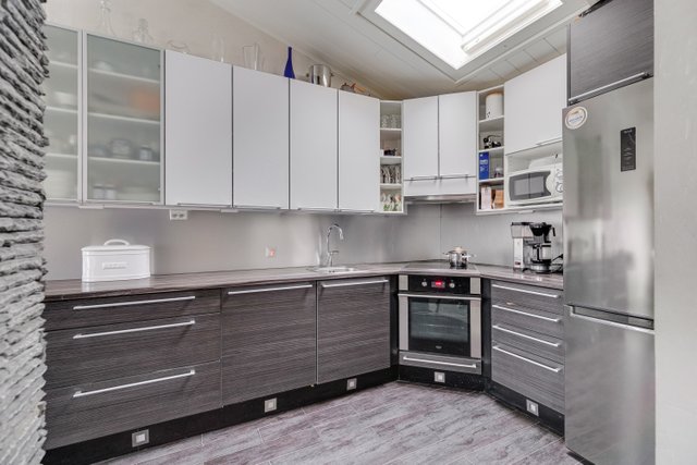 - Jääkaappipakastin, uuni, liesi, liesituuletin, ja astianpesukone