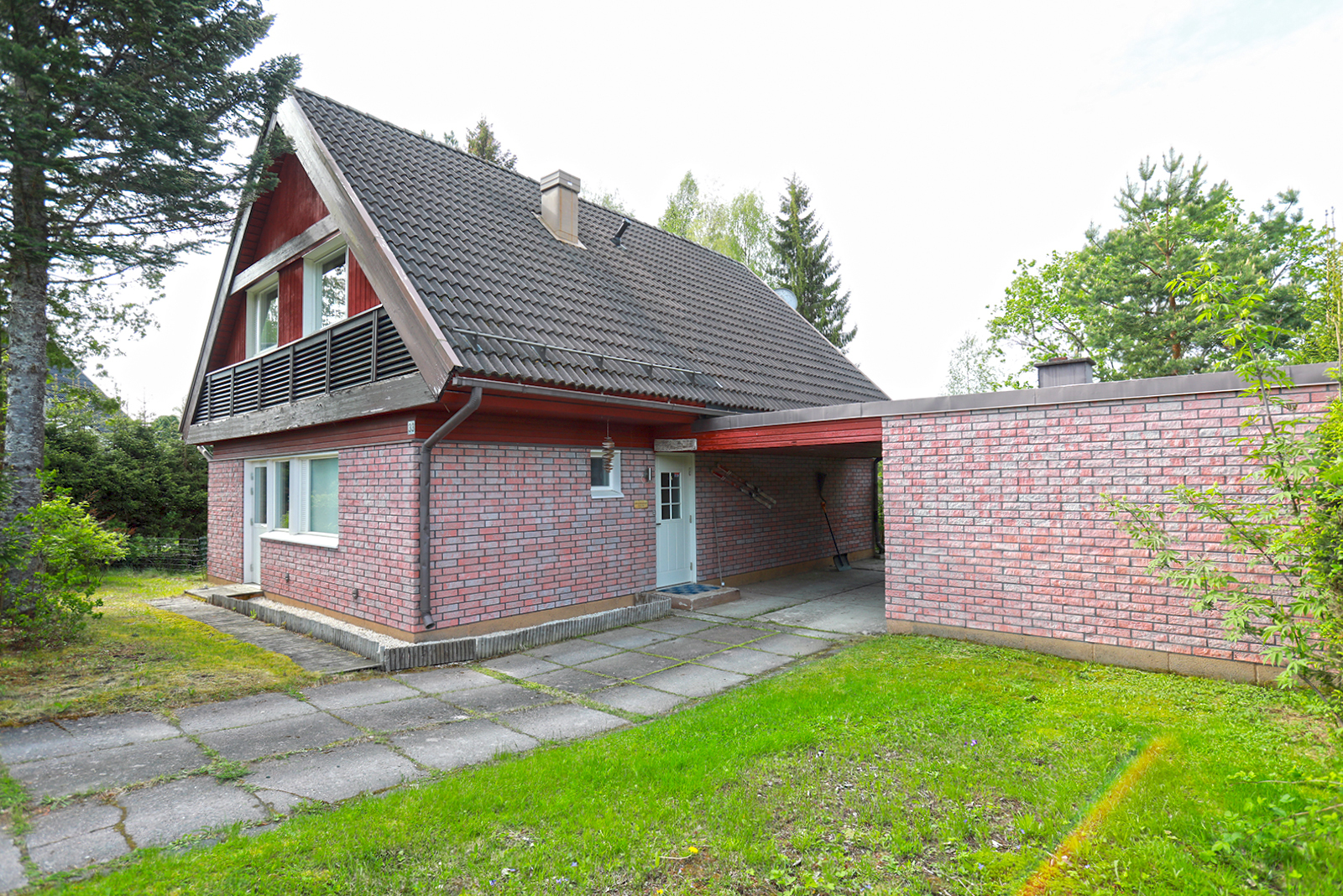 - päärakennus tiilikate ja varasto huopakate