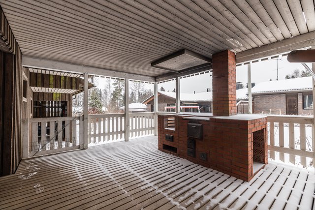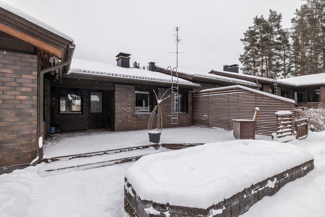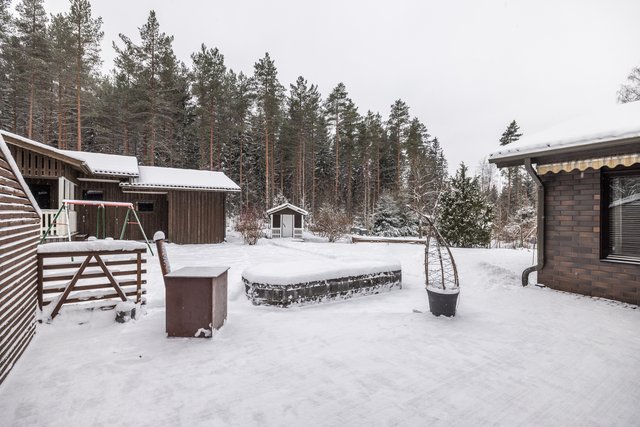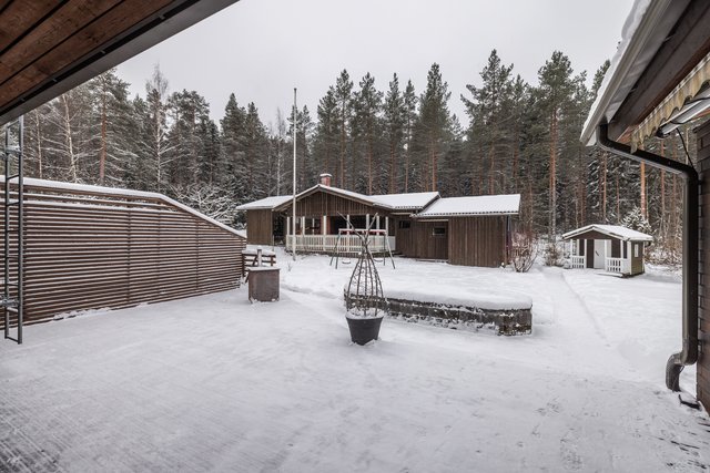 - Autotalli 25m2. Lisäksi erillinen talousrakennus (v.-91), kokonaisalaltaan 122m2, jossa yhteiset taloyhtiön varastotila, pihakeittiö/savustus/grillikatos sekä huoneistokohtaiset pyykinkuivauskatos, polttopuuvarasto ja kylmä varastotila