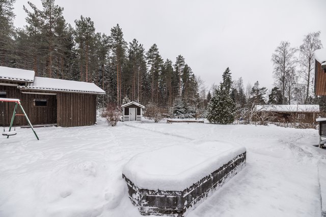 Pihapiiri on aurinkoinen ja kaunis, ja siellä on erillinen talousrakennus, joka tarjoaa runsaasti säilytystilaa sekä pihakeittiön ja grillikatoksen. Autotalli ja runsaat parkkitilat takaavat, että pysäköinti on vaivatonta.