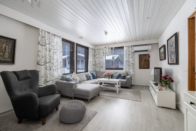 Kolme makuuhuonetta tarjoavat mukavasti tilaa perheenjäsenille, ja kaksi wc:tä helpottavat arjen sujuvuutta. Saunaosasto on uusittu vuonna 2010, ja siellä pääsee nauttimaan rentouttavista löylyistä puukiukaan lämmössä.
